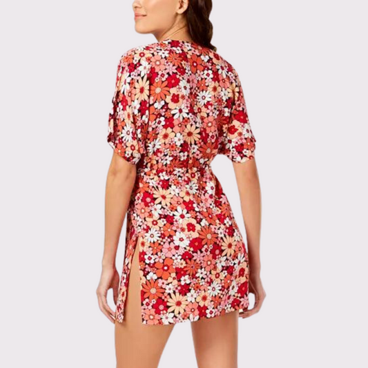 أُوكَازيُونغطاء فستان مطبوع برباط أمامي