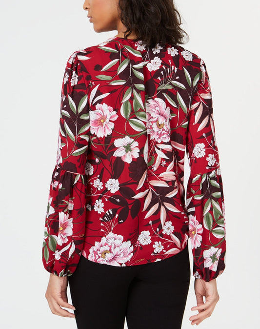 Floral-Print Faux-Wrap Top