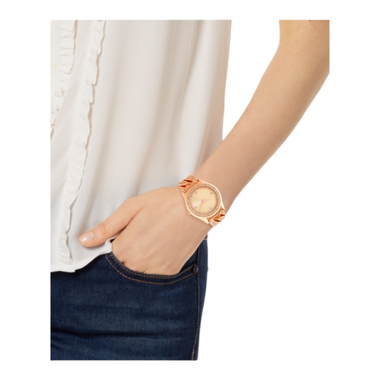 أقراط نسائية مرصعة بأحجار الراين باللون الذهبي الوردي ساعة سوار 37 مم