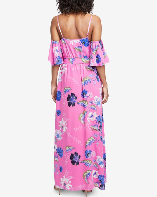 RACHEL Rachel Roy Printed Ruffled Cold-Shoulder Dress